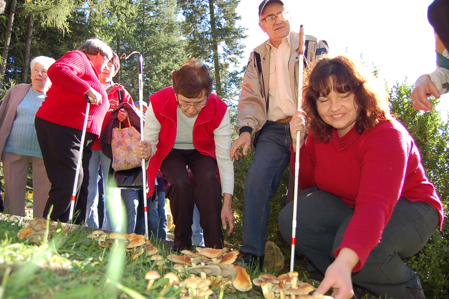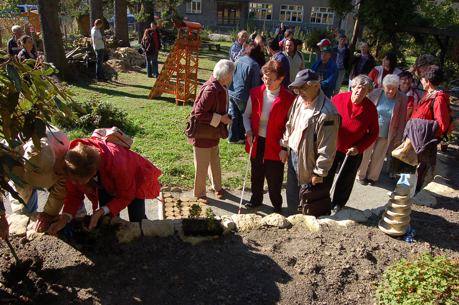 Poslední krok v realizaci projektu Zahrada smyslů financovaného Nadací OKD a Nadací Partnerství bylo odhalení smyslového záhonu. Byl krásný podzimní den, naši nejbližší spolupracovníci ze SONSU Blansko a z Paprsku z Velkých Opatovic zasadili první rostliny. Nevidomá sochařka Petra Voglová pro nás vyrobila sochy - kuličkovníky, ty vzbudily velký zájem . Potom si všichni zahoubařili. Kousíček od nové hmatové stezky vyrostlo několik trsů václavek. Někteří nevidomí si osahávali houby v přírodě poprvé v životě. Žáci partnerské školy v Kunštátě vyrobili úžasnou těžní věž jako poděkování Nadaci OKD, která přispěla velkým dílem k realizaci tohoto projektu. Celé odpoledne nás doprovázela hudba skupiny Bluemy z Jevíčka.
