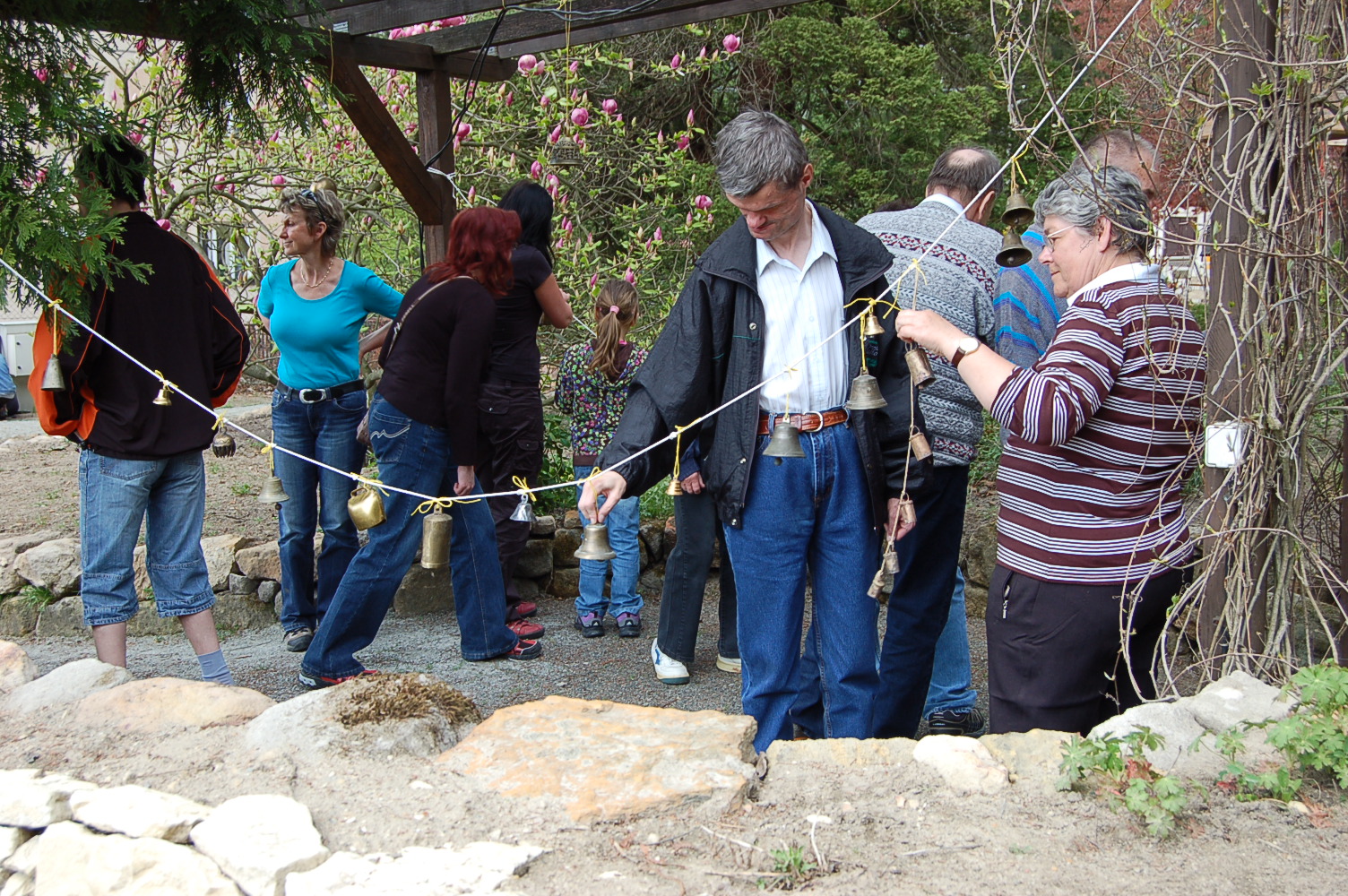 Tentokrát jsme sázeli v parku Jeskyně Blanických rytířů rostliny do smyslového záhonu. Vybrali jsme rostliny zajímavé vůní jako např. levanduli, dobromysl, nebo rostliny zvláštní na dotek. Traviny, thuje, bergenie. Pozvali jsme paní Jiřinu Kunderovou, která v loňském roce sázela ještě se svým manželem Ludvíkem Kunderou. Když byly rostliny zasazeny, přišlo na řadu malé občerstvení a pro zájemce byla připravena bryčka tažená dvěma koníky. Velkou pozornost sklidila výstava zvonků, kterou zapůjčila Hana Vošlajerová. Na kytaru zahrál Oldřich Klíma. Malá přeháňka v závěru pokropila čerstvě zasazené rostliny.