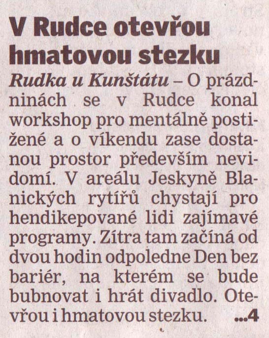 Součástí pondělního Dne bez bariér v Rudce bylo nejen otevření zvukové