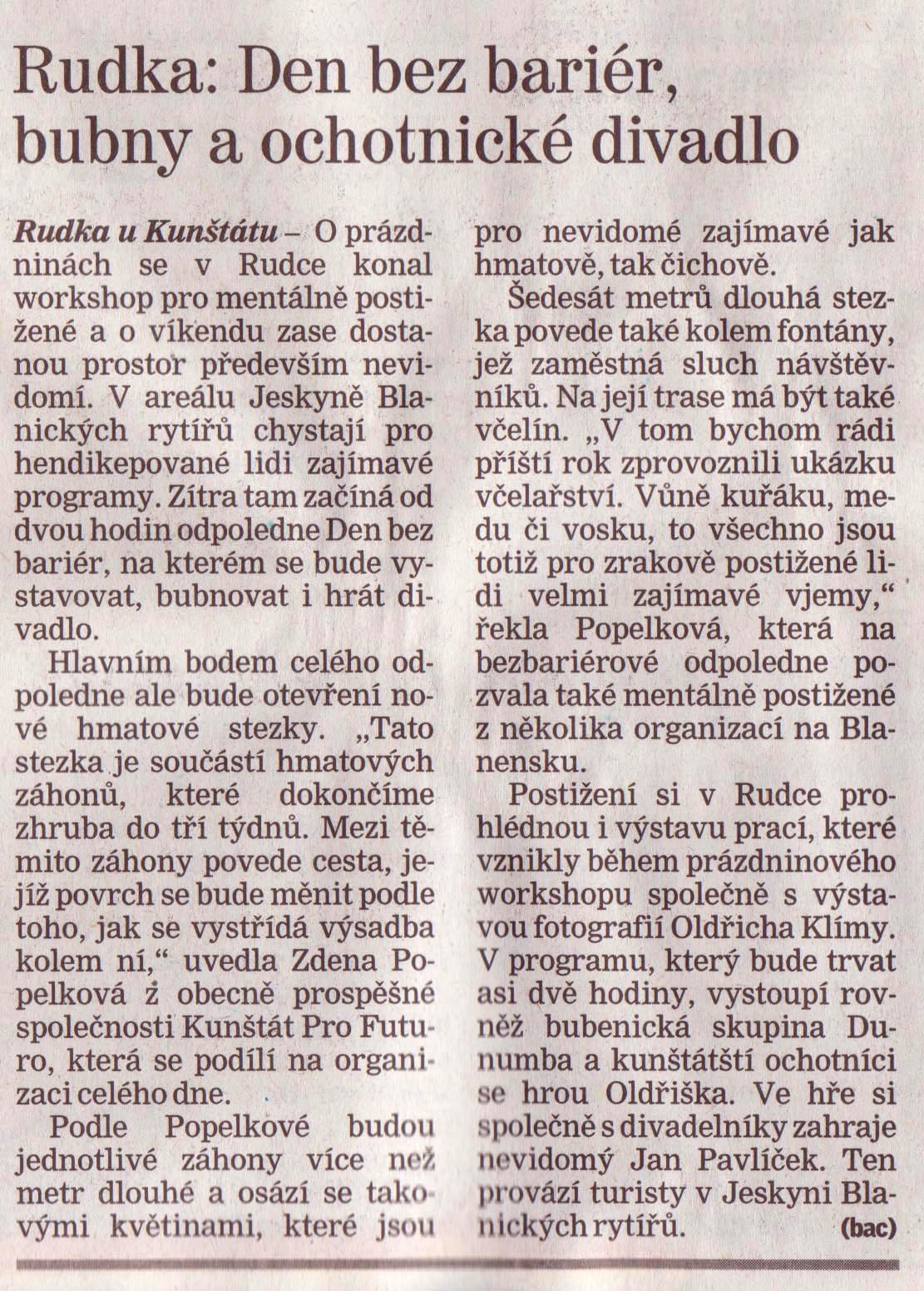 slabozraké. Akci každoročně připravuje obecně prospěšná společnost Kunštát profuturo, která se zaměřuje na zkvalitnění života lidí se zdravotním postižením a jejich integraci do společnosti.