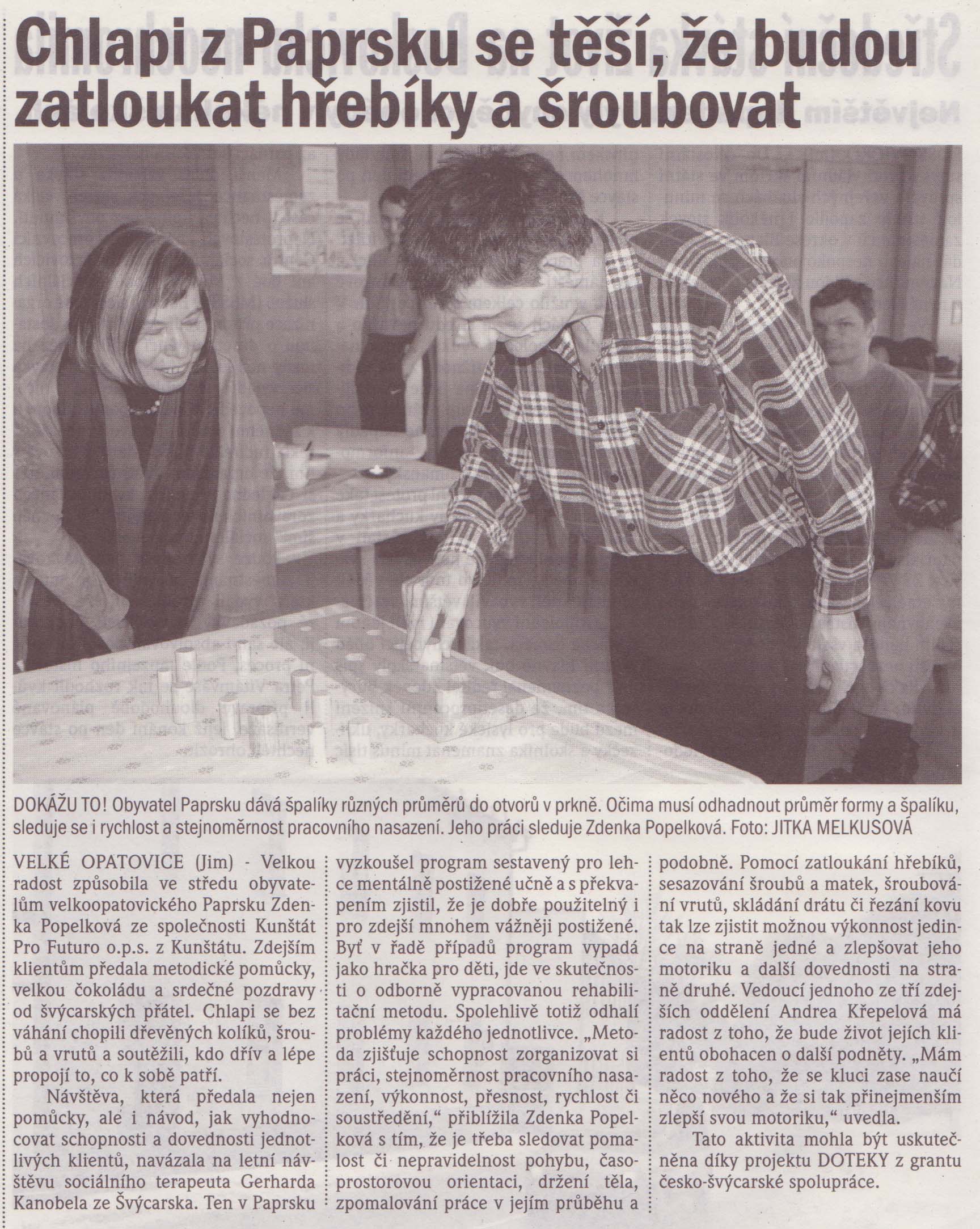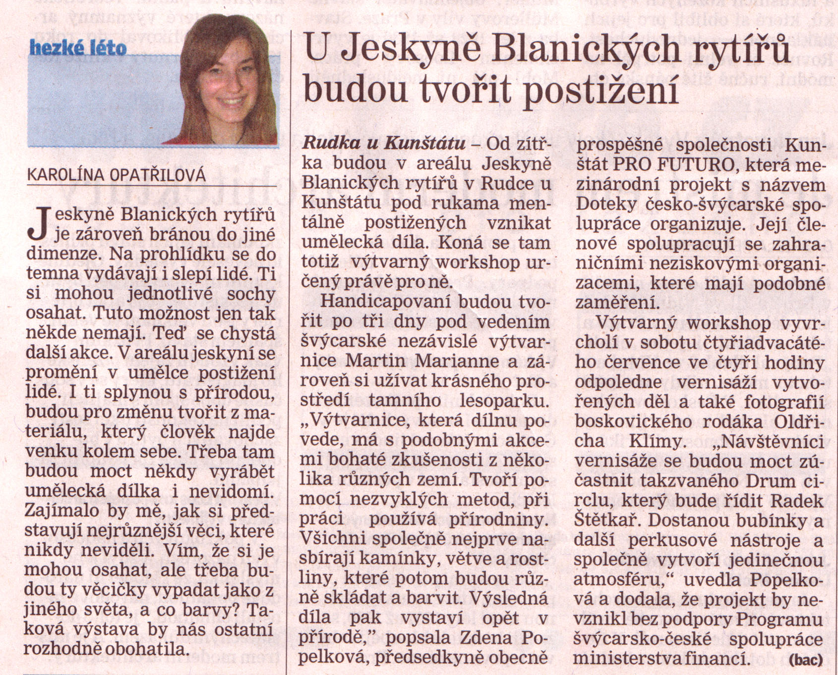 obecně prospěšné společnosti Pro Futuro Kunštát Zdenka Popelková.